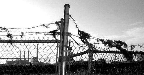 to a barbed wire fence